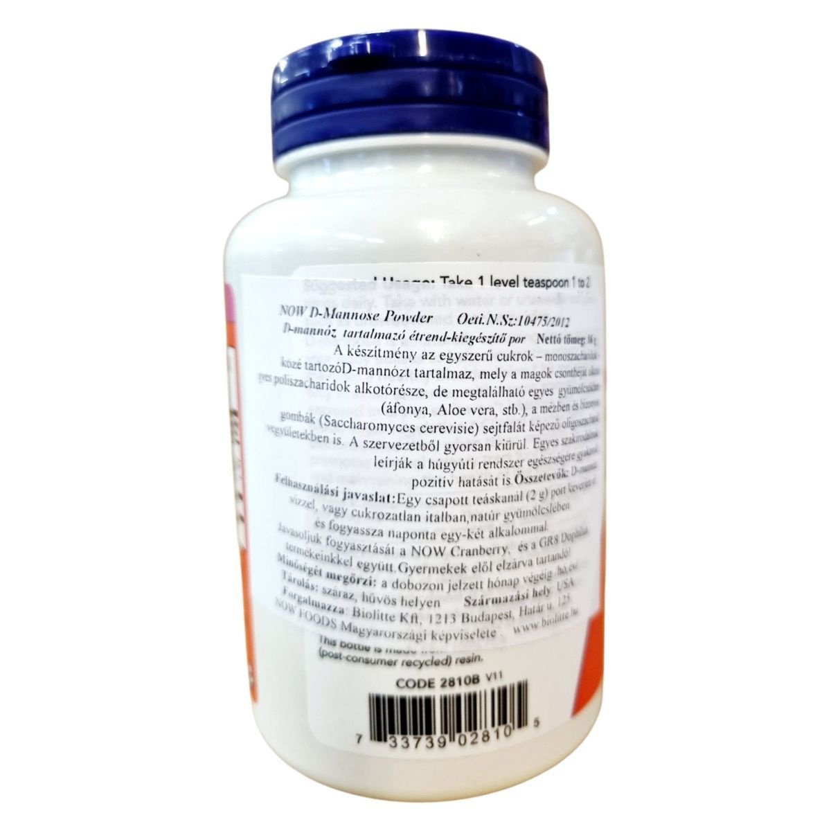 A NOW D-Mannose Powder egy tiszta, organikus D-mannóz port tartalmazó étrend-kiegészítő, amelyet a húgyúti rendszer egészségének támogatására fejlesztettek ki. A D-mannóz egy természetes monoszacharid, amely megtalálható bizonyos gyümölcsökben, mint például az áfonya és az Aloe vera, valamint a mézben és egyes gombák sejtfalában. A termék nem tartalmaz hozzáadott összetevőket, és mentes a gyakori allergénektől. A NOW D-Mannose Powder a GMP minősítésnek megfelelően készül, és a termék minőségét az USA-ban tesztelik. A termék fogyasztása javasolt a NOW Cranberry és GR8 Dophilus termékekkel együtt.