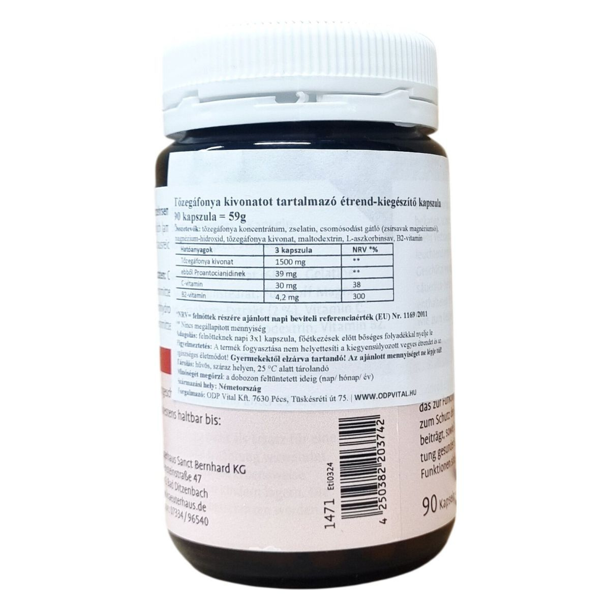 A tőzegáfonya az észak-amerikai kontinensen régóta ismert növény, melyet Európában is egyre nagyobb figyelem övez. Gyümölcse intenzív ízű és gazdag proantocianidinekben, melyek fontos növényi hatóanyagok. A kapszulában található 30 mg C-vitamin hozzájárulhat az immunrendszer megfelelő működéséhez és a sejtek oxidatív stresszel szembeni védelméhez. A 4,2 mg B2-vitamin támogatja a nyálkahártyák egészségét, amelyek funkciói különösen jelentősek a húgyutak egészsége szempontjából. A termék Németországban készül, 90 kapszulából álló kiszerelésben, melynek együttes tömege 59 g.