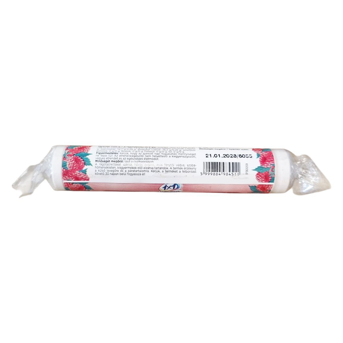 Az 1x1 Vitamin Magnézium 100 mg + B6 málnaízű rágótabletta szőlőcukorral magnéziumot és B6-vitamint tartalmaz, amely hozzájárulhat a normál izomműködéshez és segítheti a fáradtság csökkentését. A termék szőlőcukrot is tartalmaz, és a napi ajánlott adag három rágótabletta, mely 300 mg magnéziumot és 1,05 mg B6-vitamint biztosít. A termék összetevői között szerepel dextróz, magnézium-oxid, citromsav, maltodextrin, csomósodást gátló anyag, természetes aroma, pálmaolaj, gumiarábikum és piridoxin-hidroklorid. Energia- és tápértéke 100 grammra és a napi adagra lebontva részletesen dokumentált. A termék származási helye az Európai Unió. Az étrend-kiegészítő nem helyettesíti a kiegyensúlyozott étrendet és az egészséges életmódot. A tabletták érzékenyek a levegőre és a páratartalomra, ezért száraz, hűvös helyen kell tárolni őket, elzárva a gyermekektől.