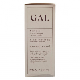 A B-vitaminok ún. aktív formái azok, amelyek a sejtekben belül aktívak. A GAL B-komplex kizárólag ilyen aktív formákat tartalmaz, amelyek jobban hasznosulnak, mint az egyszerűbb formák. Nem tartalmaz B3-vitamint, mivel a megfelelő táplálkozás esetén abból nincs hiány. A termék a GAL Multivitamin napi adagjának megfelelő mennyiségben tartalmazza a B-vitaminokat. TÜV / ISO 9001:2015 tanúsított folyamatok előírásai szerint készült termék. 60 kapszula, 22,3 g.