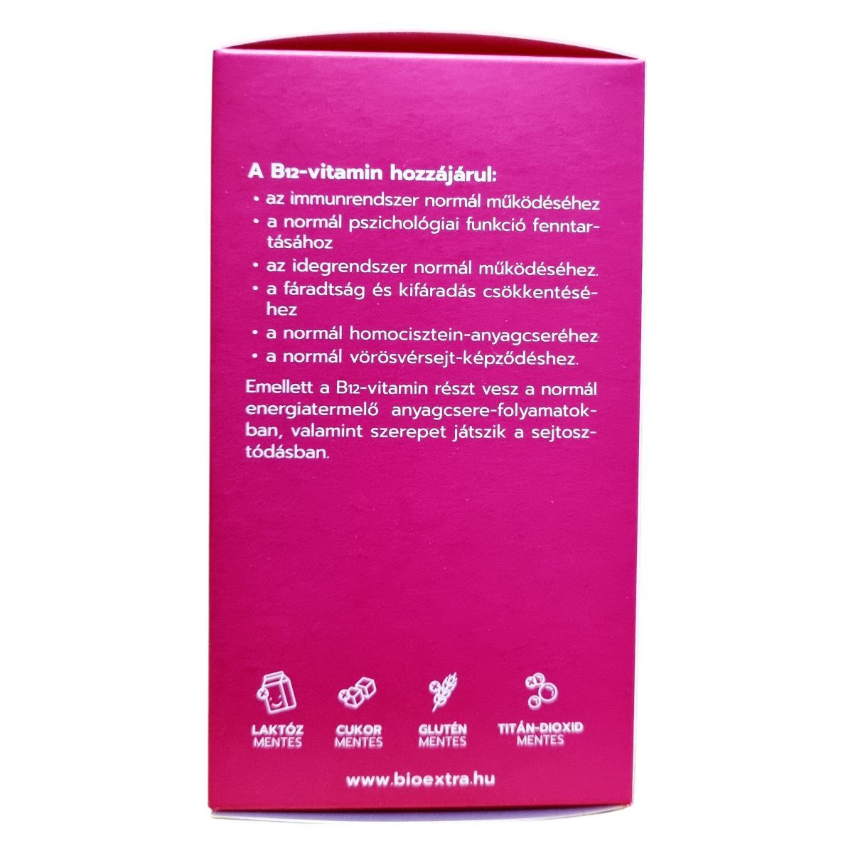 A BIOEXTRA B12-VITAMIN kapszula 1000 µg B12-vitamint tartalmaz, amely hozzájárulhat az ideg- és immunrendszer normál működéséhez, valamint a fáradtság csökkentéséhez.