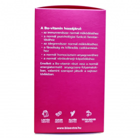 A BIOEXTRA B12-VITAMIN étrend-kiegészítő kapszula 1000 µg B12-vitamint tartalmaz, amely hozzájárulhat az immunrendszer normál működéséhez, a normál pszichológiai funkció fenntartásához, az idegrendszer normál működéséhez, a fáradtság és kifáradás csökkentéséhez, a normál homocisztein-anyagcseréhez, valamint a normál vörösvérsejt-képződéshez. Emellett részt vehet a normál energiatermelő anyagcsere-folyamatokban és szerepet játszhat a sejtosztódásban. A termék laktóz-, cukor-, glutén- és titán-dioxid mentes, így különböző étrendi igényeknek is megfelelhet.