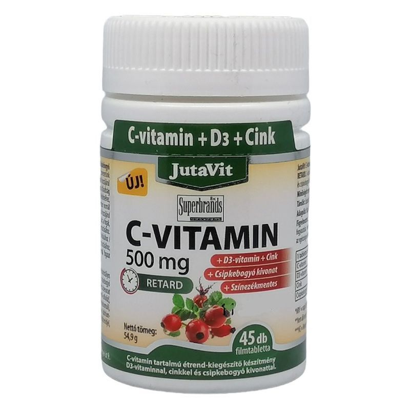 A JutaVit C-vitamin 500 mg + csipkebogyó kivonat + D3-vitamin, nyújtott felszívódású készítmény, mely fokozatosan adagolja szervezetünk számára a C-vitamint.