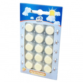 D3-vitamin 400 NE napocska formájú rágótabletta.