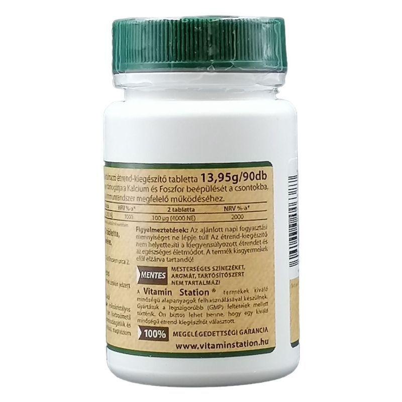 Hozzájárul a kalcium és a foszfor normál felszívódásához-hasznosulásához, a vér normál kalciumszintjének fenntartásához, az egészséges csontozat, fogazat és izomfunkció fenntartásához, a normál sejtosztódáshoz. A Vitamin Station D3-vitamin étrend-kiegészítője 2000 NE kolekalciferolt tartalmaz, mely segíthet megőrizni csontjaink, fogaink, izmaink egészségét, valamint hozzájárulhat immunrendszerünk épségének megőrzéséhez is.