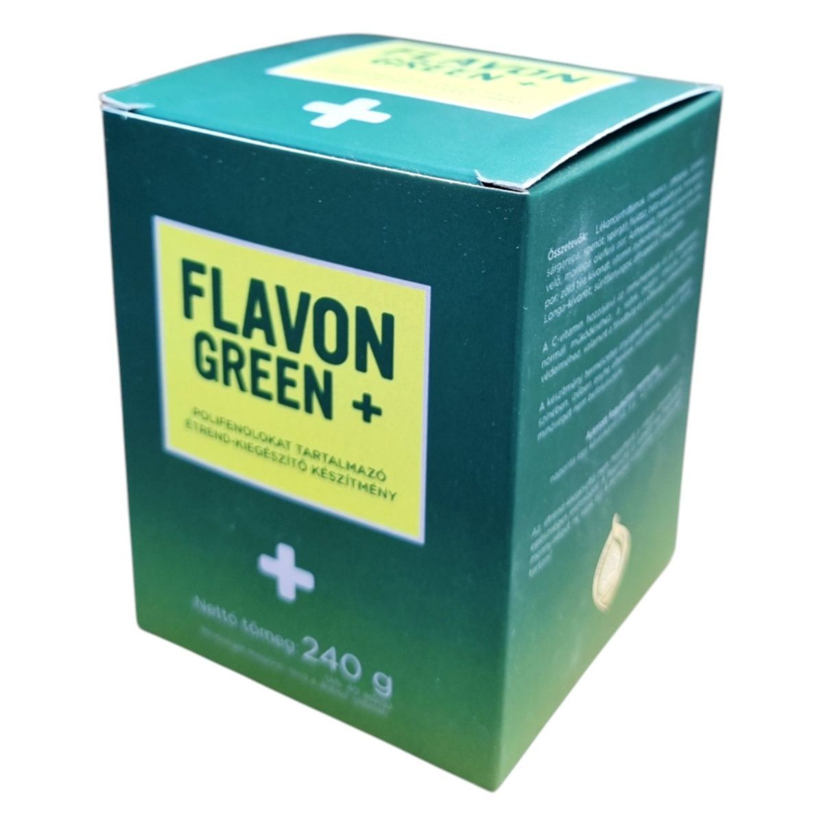 A Flavon Green+ egy polifenolokat tartalmazó étrend-kiegészítő, amely különféle növényi összetevőket, például narancs, articsóka, brokkoli, sárgarépa, spenót és spárga lékoncentrátumokat tartalmaz. A termék C-vitamint is tartalmaz, amely hozzájárulhat az immunrendszer és az idegrendszer normál működéséhez, valamint a sejtek oxidatív stresszel szembeni védelméhez. A készítmény természetes anyagokat tartalmaz, ezért állagában, színében, ízében enyhe eltérések adódhatnak, melyek a termék minőségét nem befolyásolják. A termék tartósítószert nem tartalmaz, és ajánlott napi fogyasztási mennyisége egy kávéskanál étkezés után. Fontos, hogy az étrend-kiegészítő nem helyettesíti a vegyes étrendet és az egészséges életmódot.
