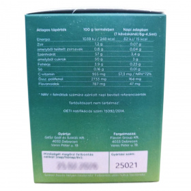 A Flavon Green+ egy polifenolokat tartalmazó étrend-kiegészítő, amely lékoncentrátumokat és különféle növényi kivonatokat tartalmazhat. A C-vitamin hozzájárulhat az immunrendszer és az idegrendszer normál működéséhez, valamint a sejtek oxidatív stresszel szembeni védelméhez.