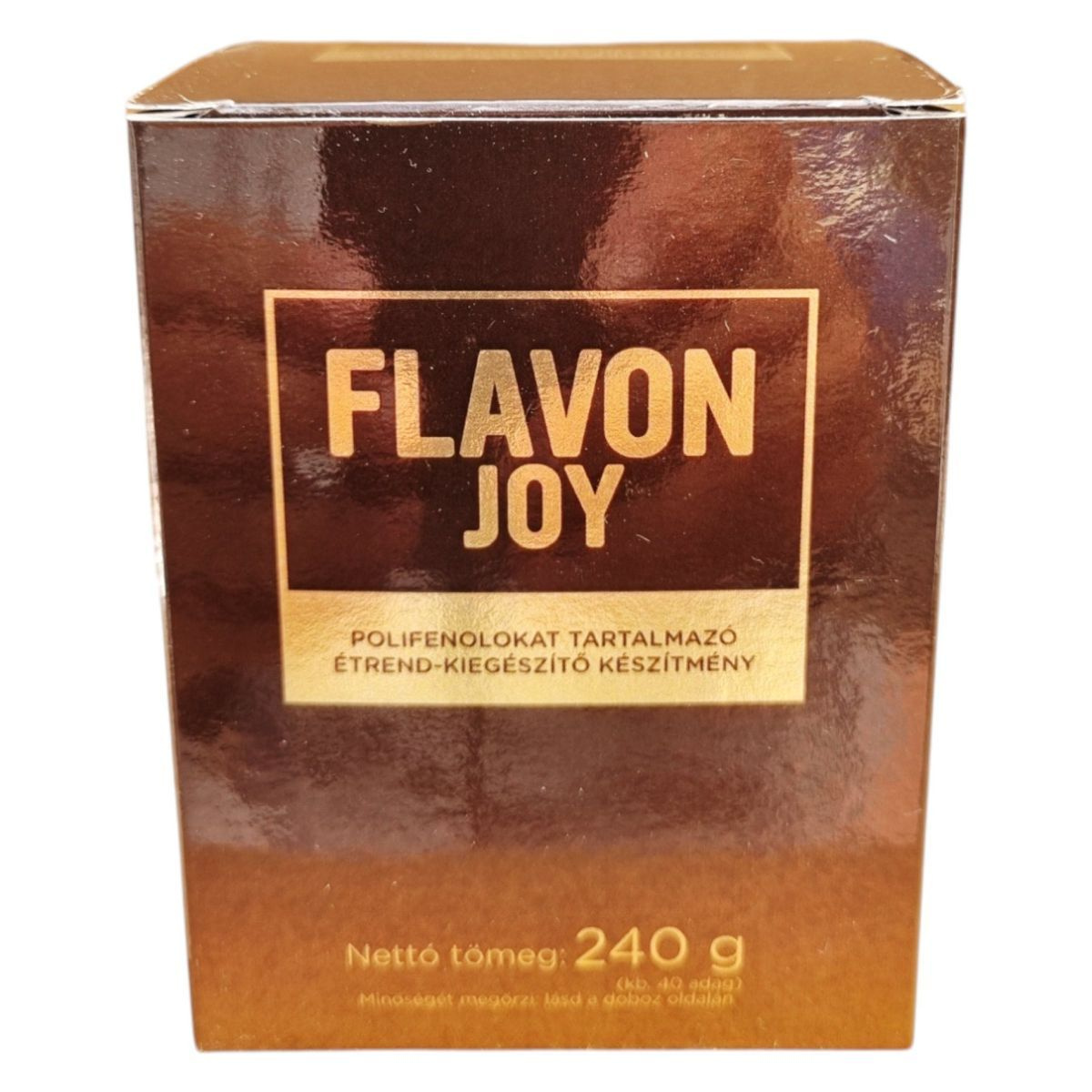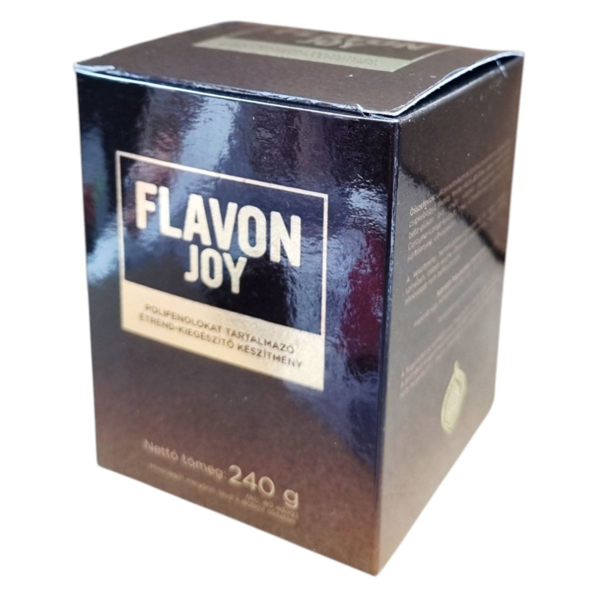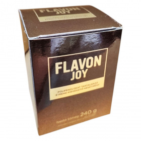 A Flavon Joy egy polifenolokat tartalmazó étrend-kiegészítő, amely különböző gyümölcsök és növényi kivonatok keverékéből áll, mint például arónia, gránátalma, tőzegáfonya, csipkebogyó, meggy, fekete ribizli, sütőtök és cékla. A termék fruktózt, kakaót, béta-glükán port, inulint, C-vitamint, Curcuma Longa-kivonatot és fahéj port is tartalmaz. A készítmény természetes anyagokból áll, ezért állagában, színében, ízében enyhe eltérések adódhatnak, melyek a termék minőségét nem befolyásolják. A termék kb. 40 adagot tartalmaz, és minőségét megőrzi a doboz oldalán feltüntetett időpontig.