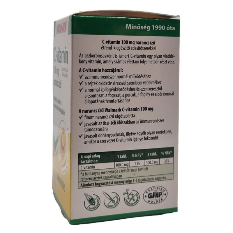 C-vitamin: 100,0 mg / rágótabletta