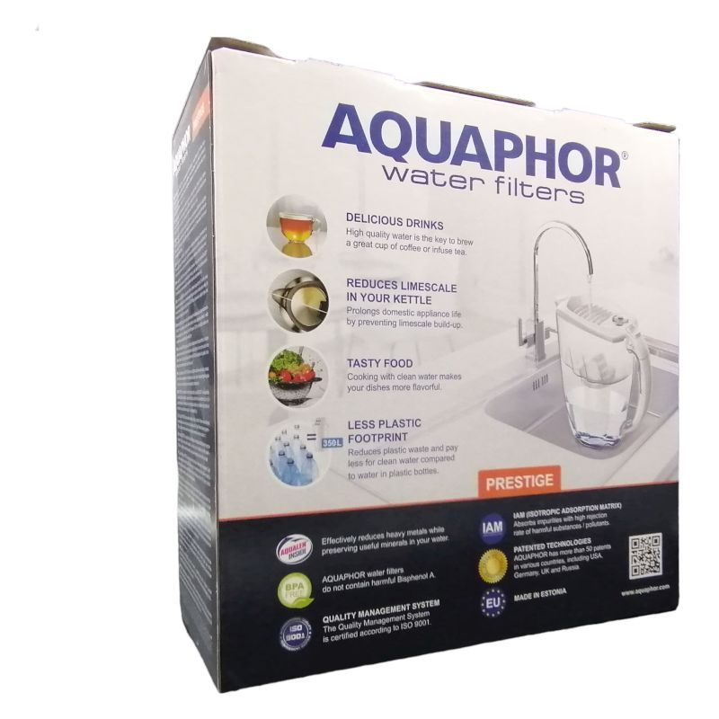Az Aquaphor Prestige kancsóban használt B100-5 Aquaphor szűrőbetét 300 liter csapvíz megtisztítására alkalmas. Kiemelkedő kapacitásának köszönhetően elég kb. 3-4 havonta cserélni, amennyiben a használata nem haladja meg az átlag 100 litert havonta.