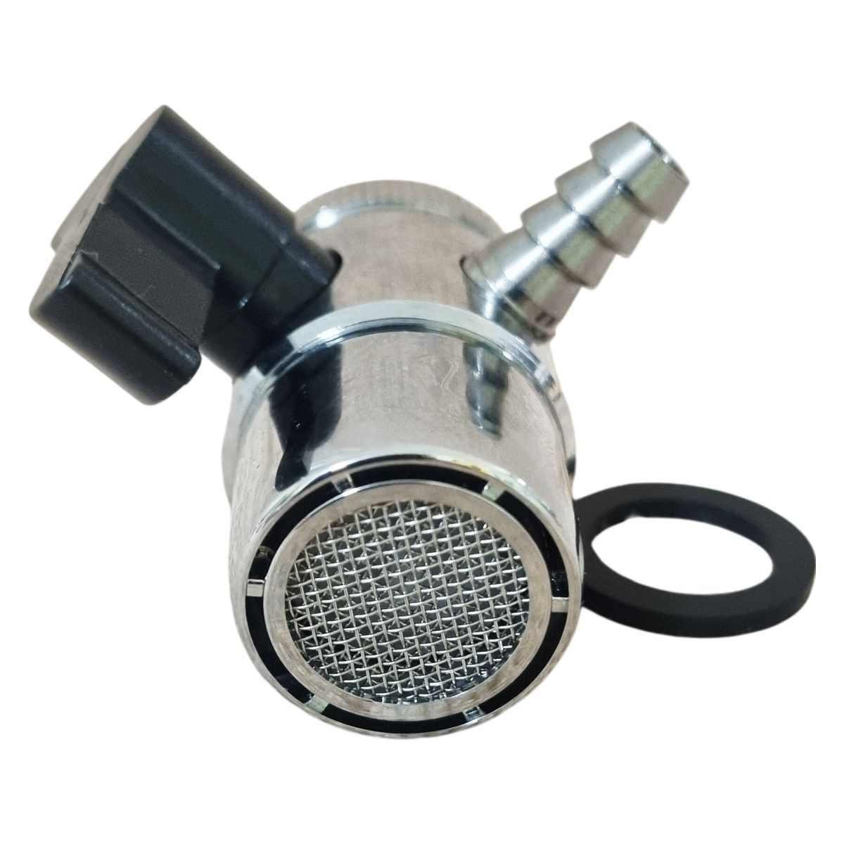 A csapra szerelhető víztisztító készülékekhez használatos útváltó csatlakozó, lehetővé teszi csapra való csatlakozást állandó jelleggel, így készülékét nem kell minden használatnál le és fel csatlakoztatni a csaptelep végére. Mérete: 3/8"-os Az útváltó csatlakozó fekete műanyag karja segítségével választhat a tisztítatlan csapvíz (mosogatáshoz használatos) és a tisztított víz között: 1.amennyiben a műanyag fekete útváltó kar függőleges állásban van, abban az esetben a víz nem folyik keresztül készülékén, így azt használhatja mosogatásra, vagy egyéb más célra is. 2.ha a fekete kar vízszintes állásban van, akkor a csapvíz kényszerítve van, hogy a készülékén keresztül folyjon át, így azt használhatjuk ivásra és főzésre egyaránt. Amennyiben belső menetes csapja (M24-es) van, használjon átalakító közcsavart hogy az útváltó csatlakozót fel tudja szerelni.